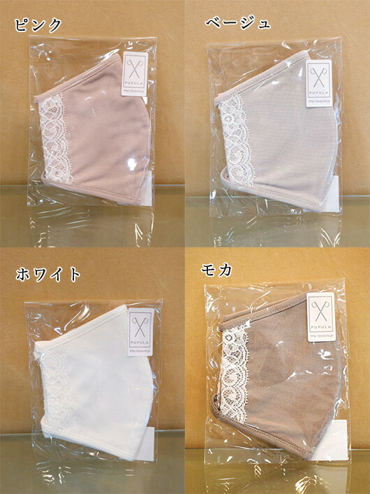 ププラ レースマスク PUPULAの両サイド レースが素敵なシンプル布マスク 洗える日本製(pp014)
